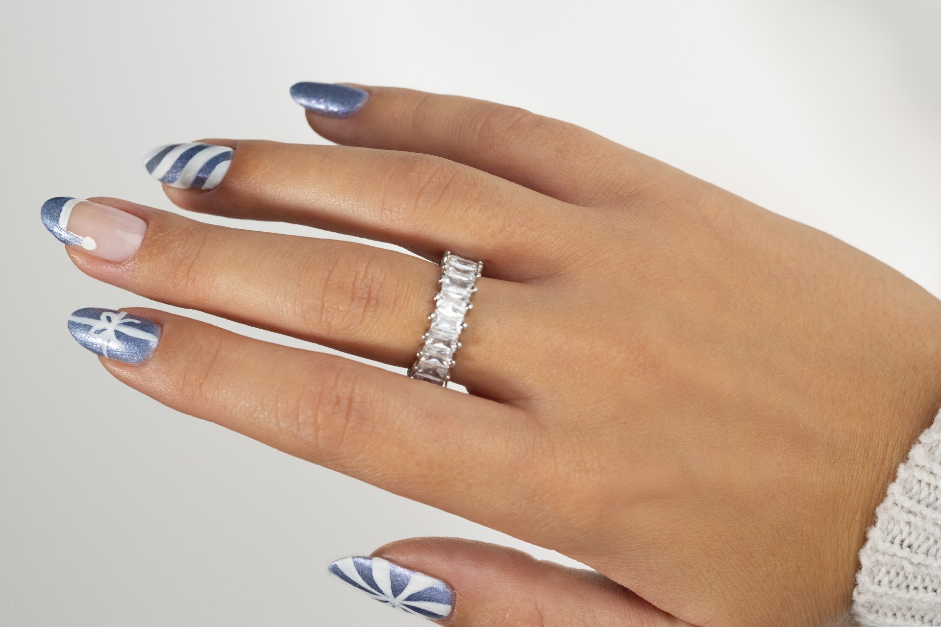 Lackiere alle Fingernägel – bis auf den Mittelfinger – in der Farbe „Like a jewel” N°406.10 und lasse den Lack vollständig trocknen, um ein gleichmäßiges und intensives Finish zu erzielen.
