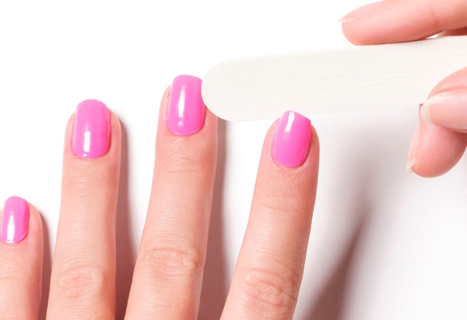 В завершение обработайте сложенную фольгу горизонтально под краем ногтя прилагаемой пилочкой и придайте ногтям желаемую форму.
